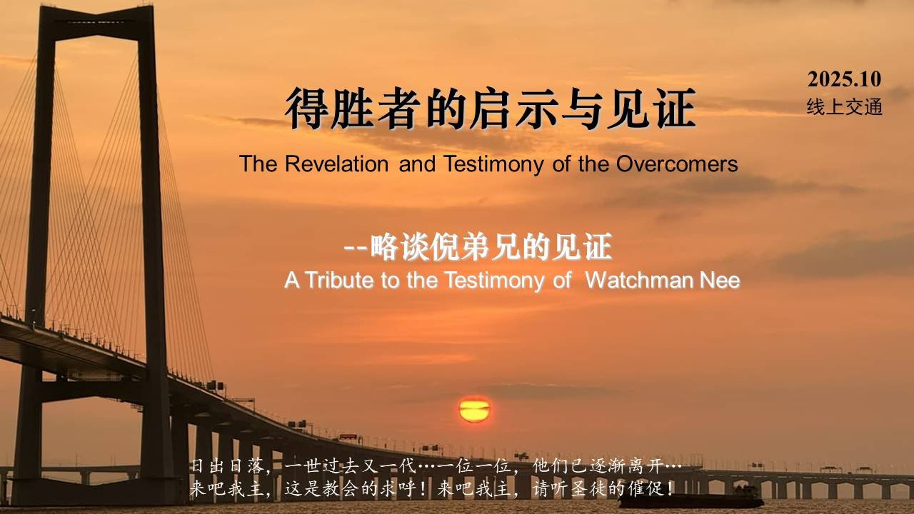 得胜者的启示与见证 - 略谈倪柝声弟兄的见证 (2025.10.13):(音频与讲义待发布)